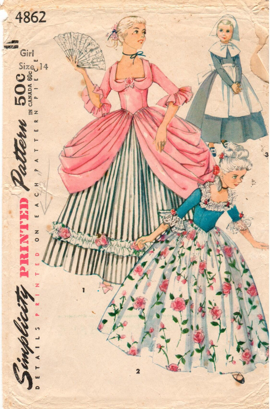 Simplicity Pattern 4862 Vintage 1950s Girls Colonial Etsy Uk